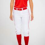 A traditional softball pant, cut for women and made from a double knit polyester for performance and durability.