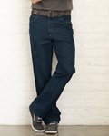 These 100% cotton denim jeans with antique brass rivets and decorative seams help present a casual, down-home image.